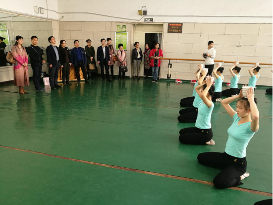 座谈结束后,考察团一行在杨小平等陪同下观摩了舞蹈、美术、戏曲等专业教学情况,考察了该院校史陈列室、实习实训场地、实验剧院和王爱爱工作室。