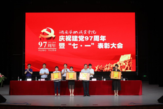 为全面深入学习贯彻习近平新时代中国特色社会主义思想和党的十九大精神,扎实开展“不忘初心、牢记使命”主题教育,进一步增强广大党员的光荣感、使命感,激发学院基层党组织活力,为加快学院升本进程,实现学院跨越式发展凝聚智慧和力量,学院于6月28日下午在松雅校区小剧场隆重召开纪念建党97周年暨“七一”表彰大会。学院党委书记王章华、院长张勇,党委副书记、副院长余会春,纪委书记彭爱莲,副院长杨向东、刘家海出席大会,全体党员干部、离退休党支部支委参加了大会。会议由张勇主持。
