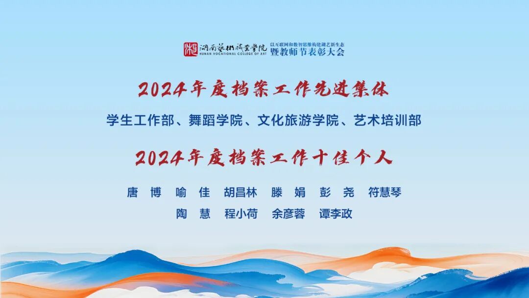 9月10日下午,“以互联网和数智思维构建湖艺新生态暨教师节表彰大会”在星河剧场举行。大会表彰了全校师德模范、优秀教师、优秀教育工作者、优秀辅导员以及年度档案工作先进集体和十佳个人。湖艺原创文旅融合剧《等你在沙洲》剧组全体成员获评“特别贡献奖”。