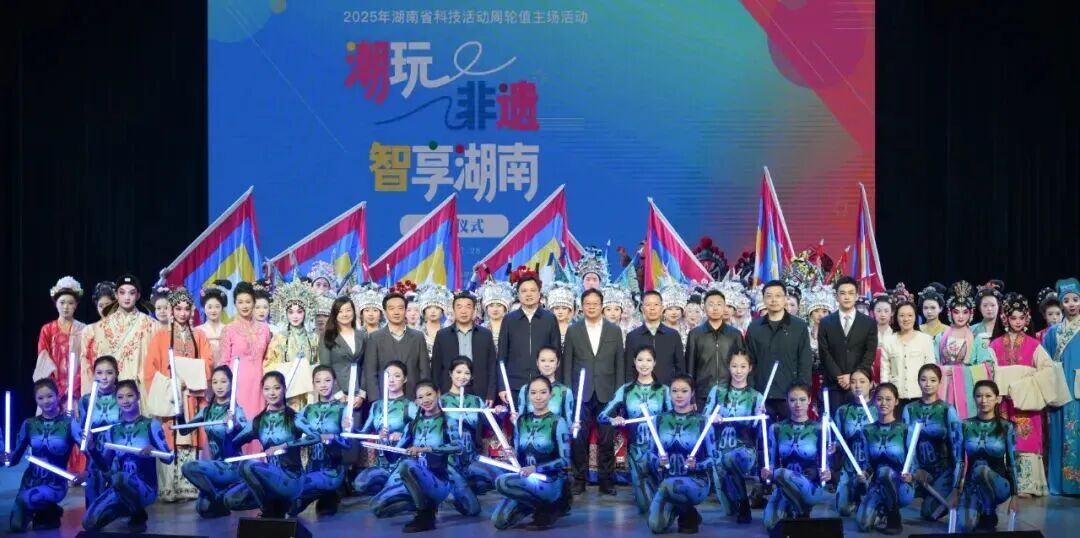 11月28日下午,2025年湖南省科技活动周轮值主场活动“潮玩非遗·智享湖南——启动仪式暨非遗进校园科普展演”在湖南艺术职业学院星河剧院举行。本次活动由湖南省文化和旅游厅、湖南省科技厅联合主办,湖南艺术职业学院承办,湖南省星河演出有限公司具体执行,活动以“非遗遇见科技”为主线,通过沉浸式展演、活态传承展示等形式,打造了一场传统与未来对话的非遗科普盛宴。