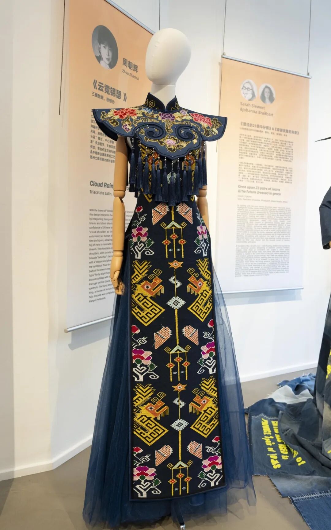 “交织未来——2025巴黎时尚艺术双年展”是“中国之光”巴黎时尚艺术周的核心展会之一,以 “传统技艺与未来设计融合”为主题,是国际时尚艺术领域的重要交流平台。本届展会汇聚了全球数十个国家的优秀作品,周朝晖老师的《云霓锦瑟》正是凭借 “以指尖温度延续古法技艺” 的创作内核,成为东方美学的代表。